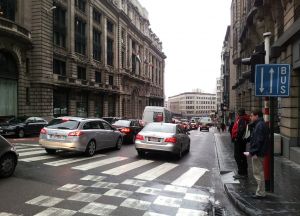 • marquages : mise en évidence de la bande bus (principe selon lequel en Belgique les usagers sont très sensibles à ce qui est explicitement écrit sur le sol, plus que la signalisation verticale)