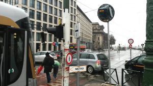 Description : les trams sont prioritaires. Pour les bus vaut la priorité de droite ordinaire, mais une mesure Avanti est la mise en voirie prioritaire des rues où ils circulent.