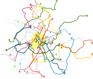 Carte des axes ou, au terme du plan d’action, les voyageurs pourront disposer d’un service performant et fiable.