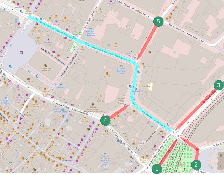 Mise à jour (mai 2020) : le flux n°4 a été supprimé (transformation en rue piétonne).